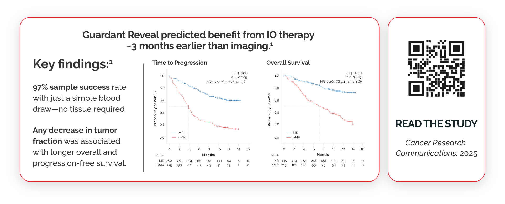 References: 1. Liang SI, Quandt Z. Wienke S, et al. Methylation-based ctDNA tumor fraction changes predict long-term clinical benefit from immune checkpoint inhibitors in RADIOHEAD, a real-world pan-cancer study. Cancer Res Commun. 2025.